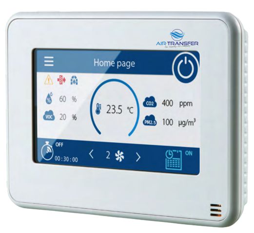 - Optioneel reglbaar op CO2, Rv, VOC of PM2.5. Sensoren optioneel.