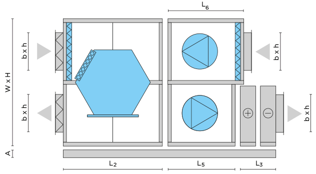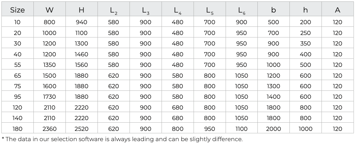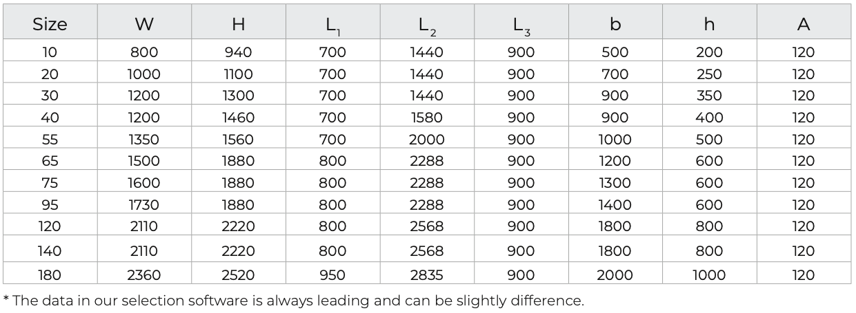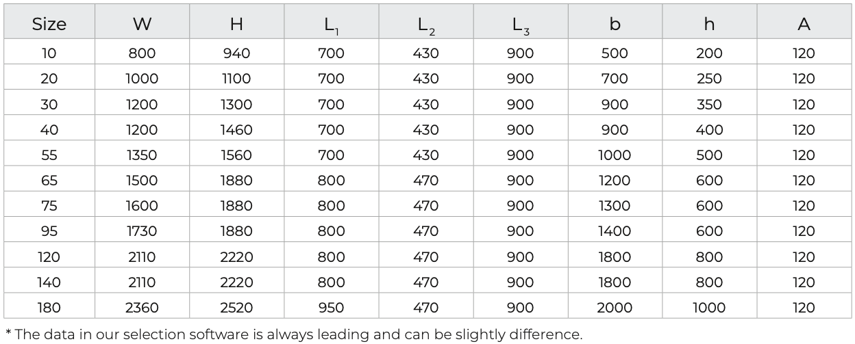 - Standaard range met rotorwiel of tegenstroom wisselaar tot 20.000 m3/h.